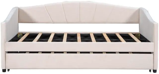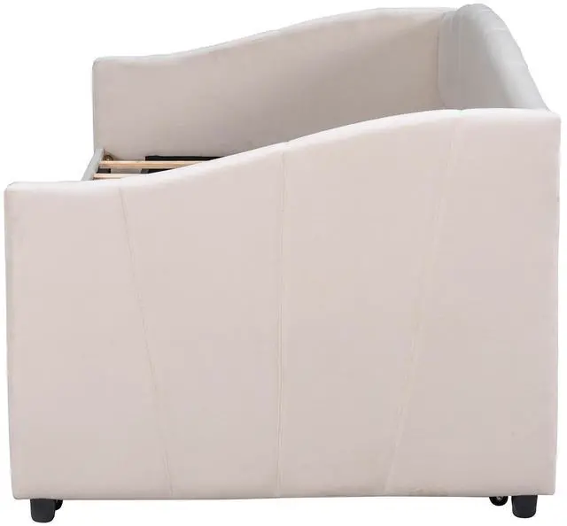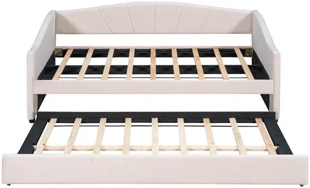 • Upholstered Daybed Sofa Bed Twin Size With Trundle Bed and Wood Slat ,Beige
