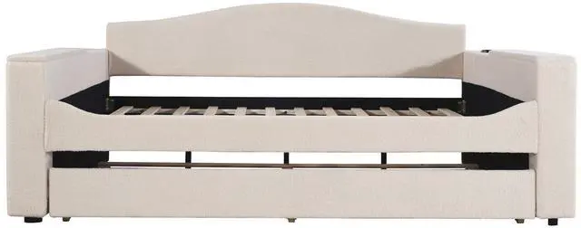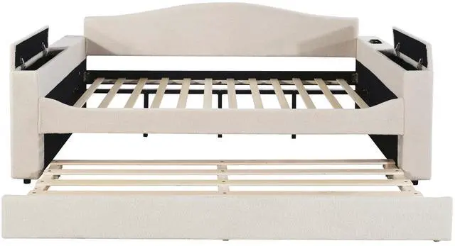 [Storage Armrest]This elegant daybed comes with storage armrests on either side, which is at hand for you to store and get your daily items, snacks and drinks. This humanistic design of the bed brings easy and comfortable living exeperience.