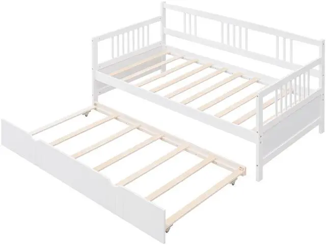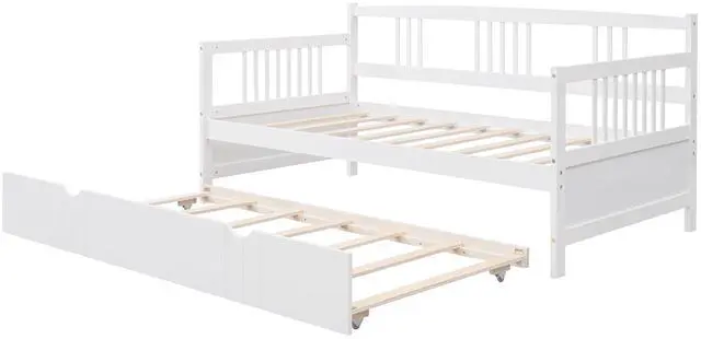 [Space-saving] This twin size daybed with a twin hideaway trundle bed is easy to create the extra sleep space