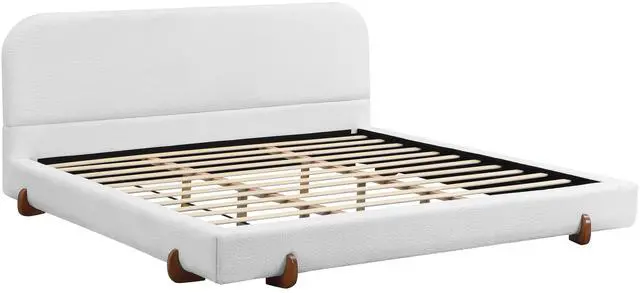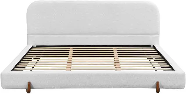 Elegant appearance enhances bedroom style: The overall shape of the bed is simple yet elegant. Paired with white fabric and brown rubber wood legs, it instantly enhances the bedroom's sense of refinement and luxury, reflecting the owner's lifestyle.