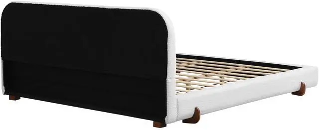 Brown rubber wood solid wood legs: Solid wood bed legs made of brown rubber wood. The solid wood material ensures load-bearing and durability. The unique shape adds an artistic sense to the bed frame and enhances the overall texture.