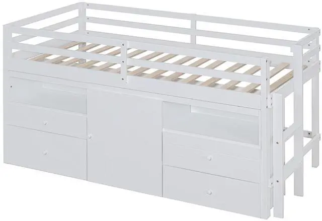 [Solid Construction] This muti-functional loft bed is crafted from a solid pine wood frame, with commercial grade MDF board for quality control and durability. Guardrails are solidly attached for added safety.