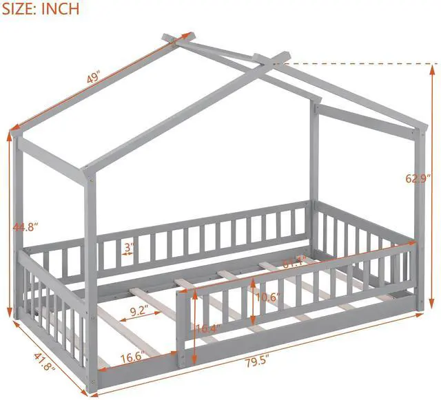 [Dimensions] Overall house bed dimension: 79.5 '' x 41.8 '' x 62.9 '' (L x W x H). Mattress not included. Some assembly is required, although we have provided clear instructions.