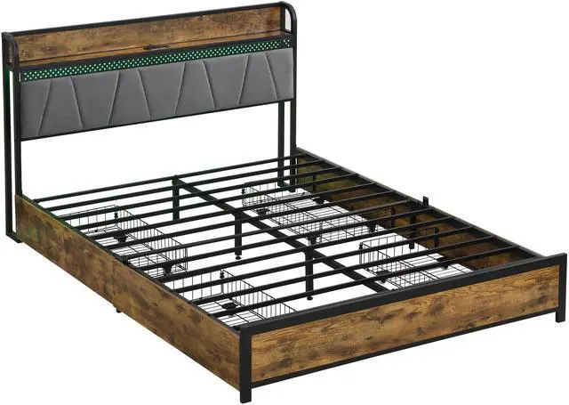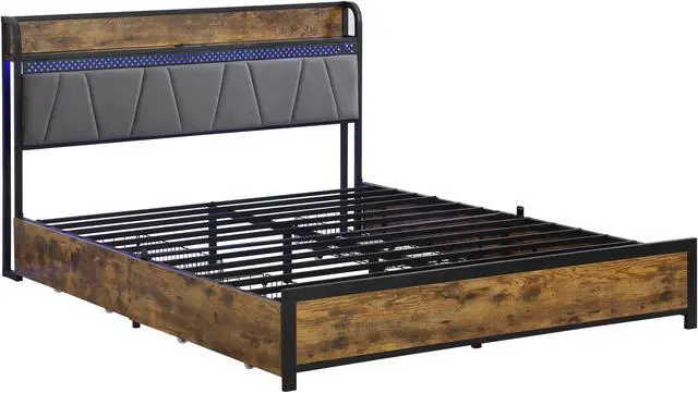 The bed headboard is built-in with 2 outlets and 2 USB-Storage headboard with outlets that make charging this design solves the problem of your electronics running low on power while you're lying in bed, allowing you to charge your phone, tablet, headphones and other electronic devices within easy reach for everyday use.
