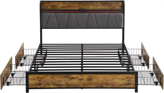 4 Large Capacity Drawers-The Full size bed has four drawers at the bottom of the bed offering you ample storage place for bed sheets, accessories, off-season clothing, etc. The drawers are also installed with rolling wheels to easily push in and pull out.
