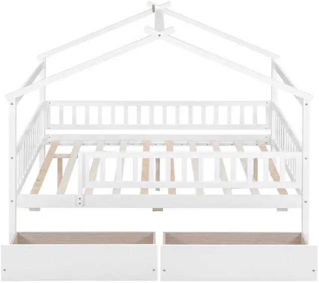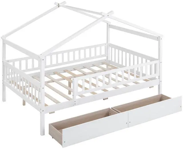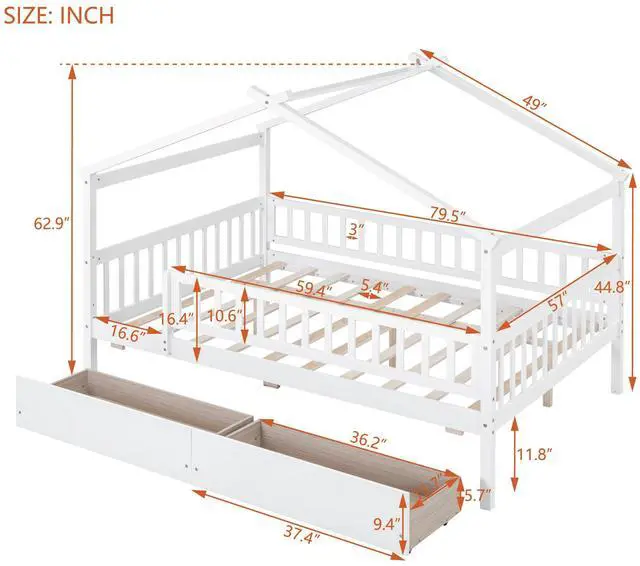 • [Spacious Storage] The wood house platform bed with two drawers offer storage space for clothes and toys, Maximize space and help to develop your child's habit of storage. It's a perfect space-saving solution to you.