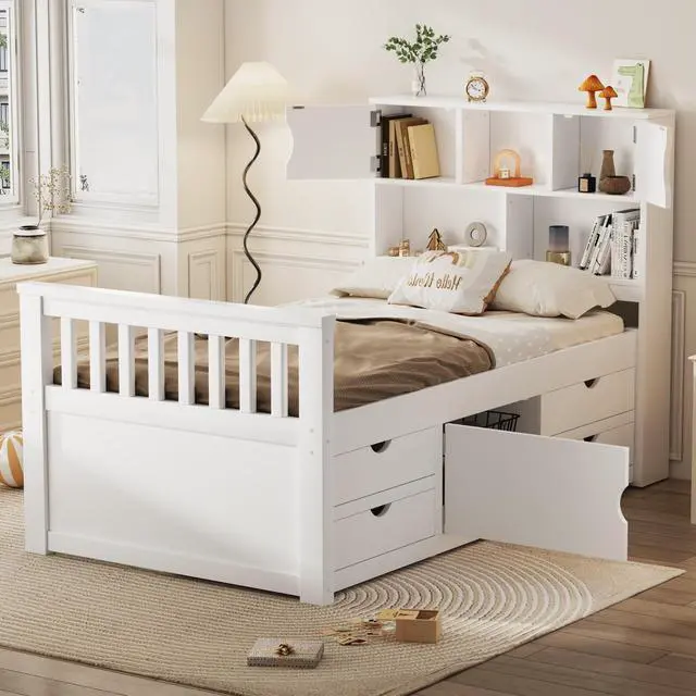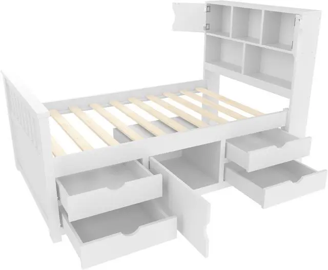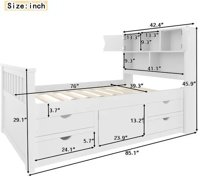 [Extra easy-access storage space] This bed includes four drawers with rails, making it incredibly convenient to keep your belongings organized and easily accessible.