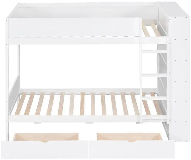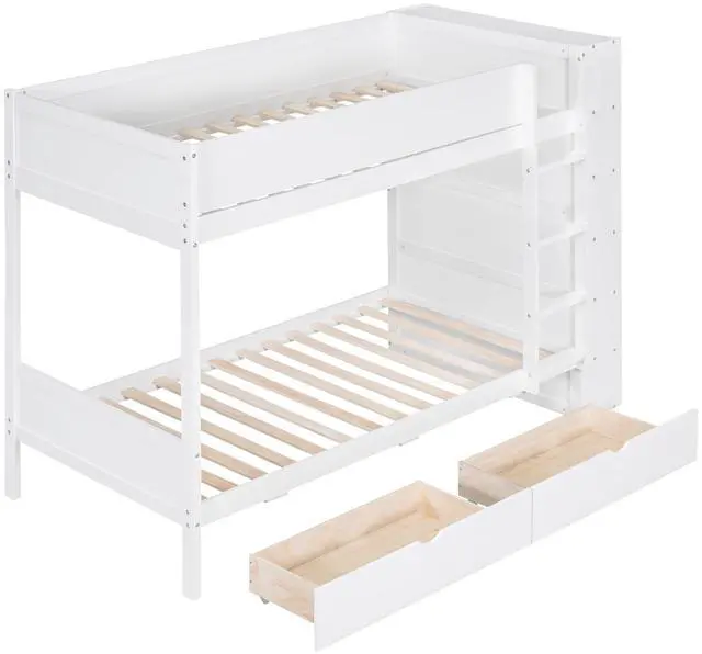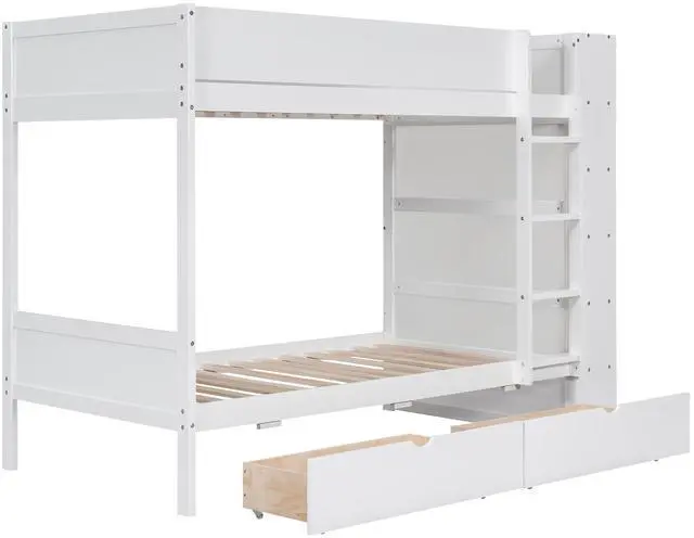 • Twin over Twin Bunk Bed With 2 Drawers and Multi-layer Cabinet, White