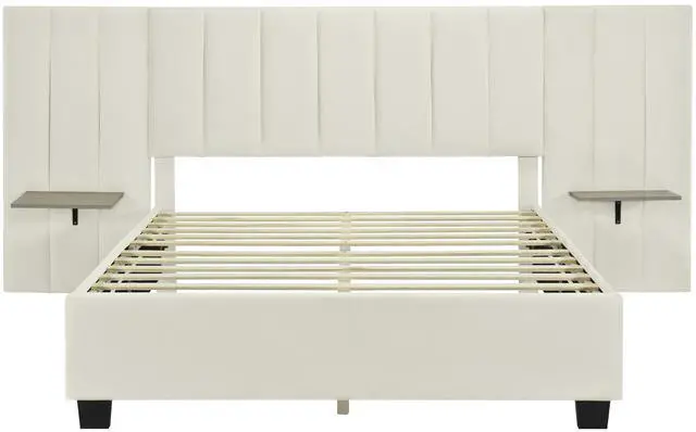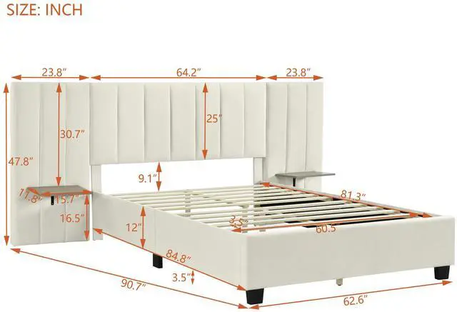 Key Features: Enjoy the ultimate in comfort with the oversized and ultra-soft headboard, providing a cozy backdrop for relaxation. Additionally, the integrated shelves on both sides of the headboard offer convenient storage for your bedside essentials, keeping them within easy reach.