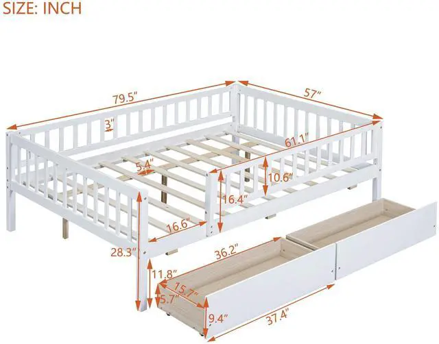 [Space-saving] This full size daybed with two drawers is easy to create the extra space when needed. Ideal for storing books and toys, making room-tidying a breeze.