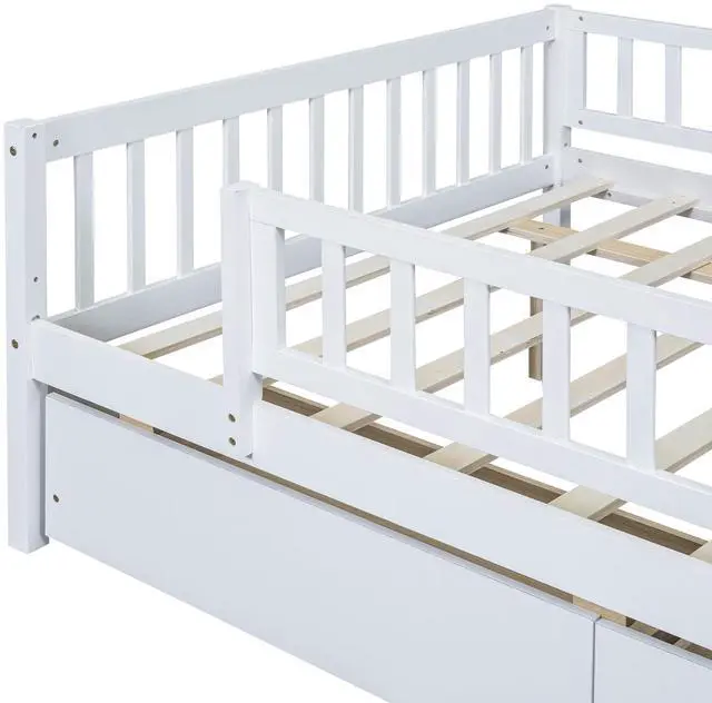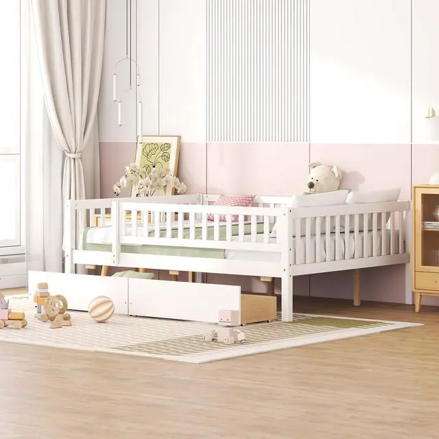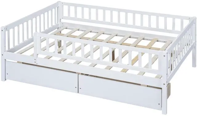 • Full Size Daybed Wood Bed with Two Drawers , White