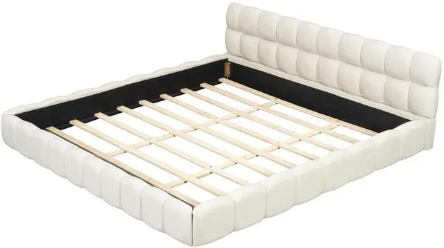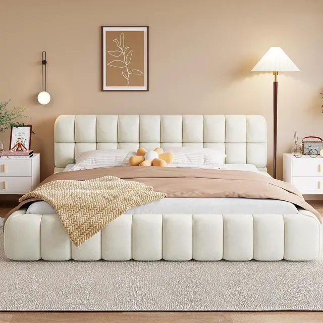 [Stability] The bed frame is made of solid MDF and particle board, providing a dense and strong support for you. The construction ensures both a lifetime of use, and a sturdy bed frame with a head which won't wobble. Enjoy many long years of relaxation and family fun, secure in this meticulously designed upholstered platform bed.