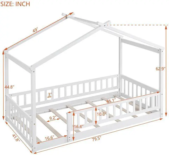 [Dimensions] Overall house bed dimension: 79.5 '' x 41.8 '' x 62.9 '' (L x W x H). Mattress not included. Some assembly is required, although we have provided clear instructions.