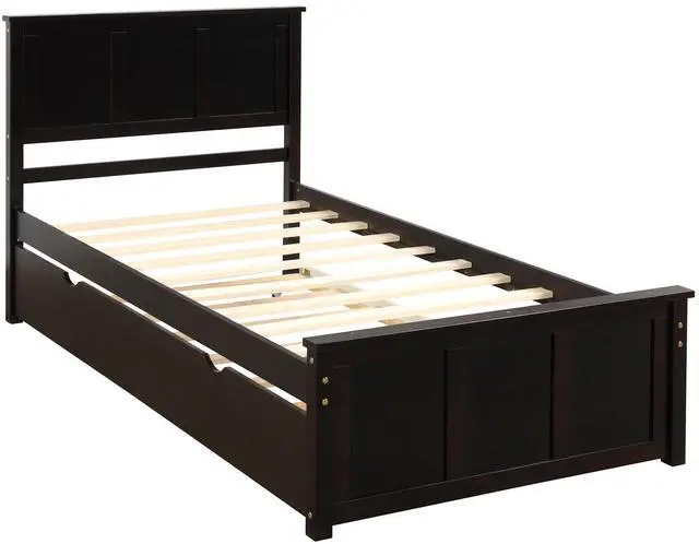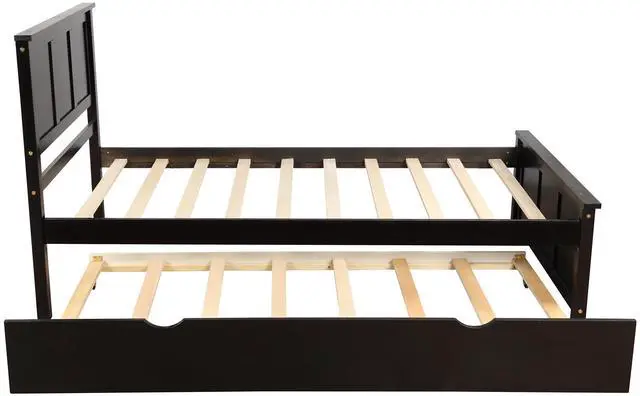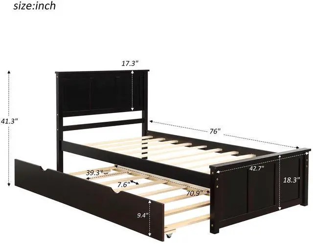 With trundle: make full use of space. Sturdy and long-lasting: made of solid wood and MDF. Trundle can be placed on either side of the bed. Assembly required
