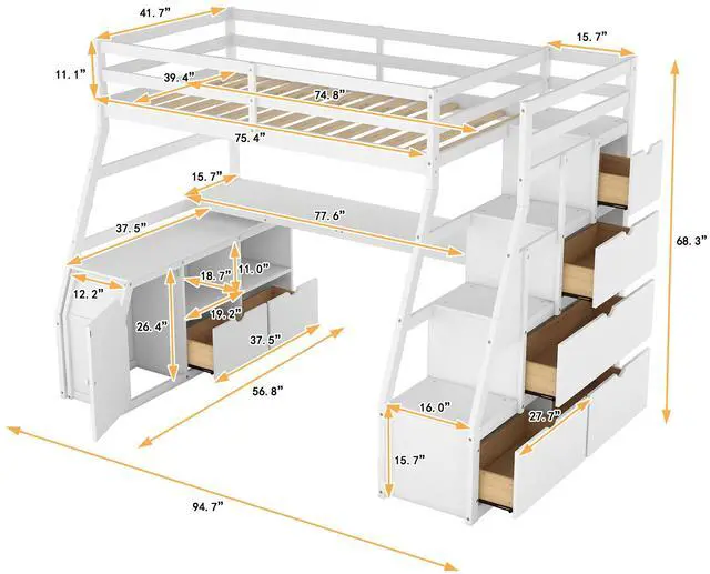 [Detail & After-sales service] 94.7"L x 56.8"W x 68.3"H. Mattress not included. Some assembly is required, although we have provided clear instructions and tools.