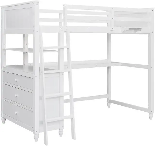 [Solid Construction] This muti-functional loft bed is crafted from a solid pine wood frame, with commercial grade MDF board for quality control and durability. Guardrails are solidly attached for added safety
