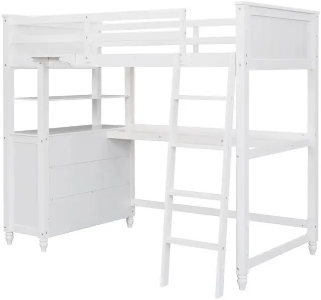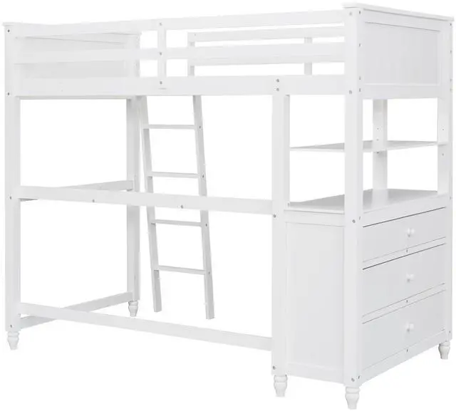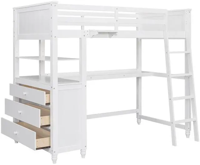 [Versatility galore] The space underneath the twin size loft bed is a good place for you to read, do homework or play and create their own world to be explored. Coming with drawers and desk, the loft bed helps to store books, display decorations, or to place a laptop