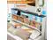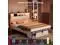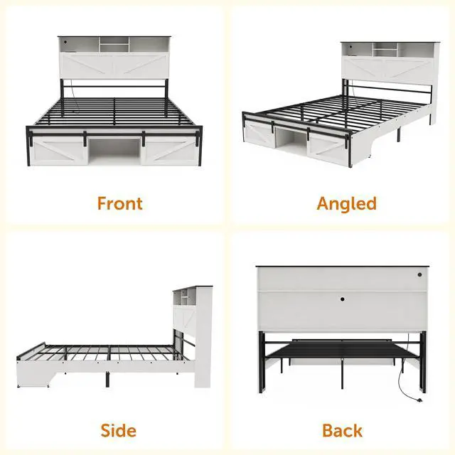 Storage Shelves and Hidden SpaceThe farmhouse bed frame with storage shelves on farmhouse headboard.