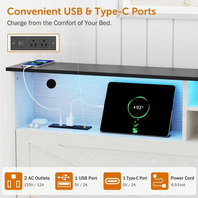 Bed Frame with Charging stationThe bed frame with storage headboard is equipped with charging station, which can easily charge your device