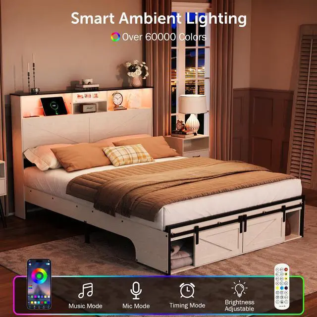 RGB led lightThe bed frame is equipped with multi-function led light on the headboard; it has over 60000 colors and you can customize colors, brightness.