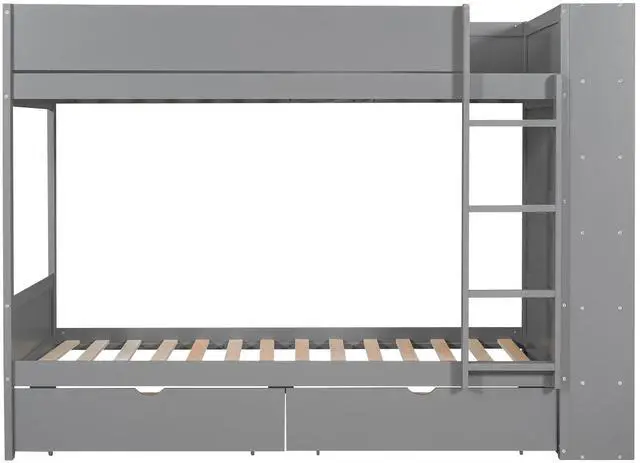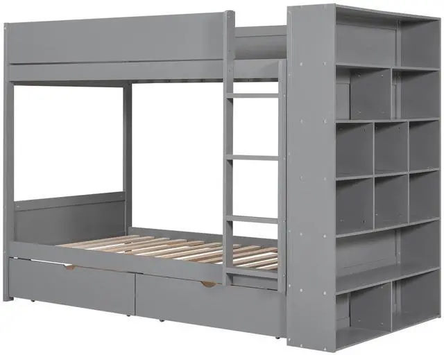 [Maximized space] The bunk bed takes up minimal space for the spontaneous sleepover guest. Even better, the drawers and the multi-layer cabinet offers extra space for clothes and bedtime stories. It takes advantage of the floor space, and allows for a cozy rest, extra work and play space and makes a great piece of furniture for growing families.