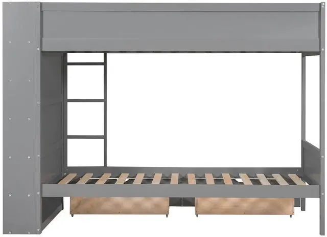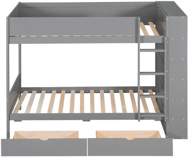 [Designed for your familys safety] The upper bunk features guardrail, while the bottom bunk is designed to include both a headboard and footboard. Along with the handrail, this bunk bed ensures top-notch security for your family. Whats more, the solid legs that made of solid pine wood can add strength and durability.