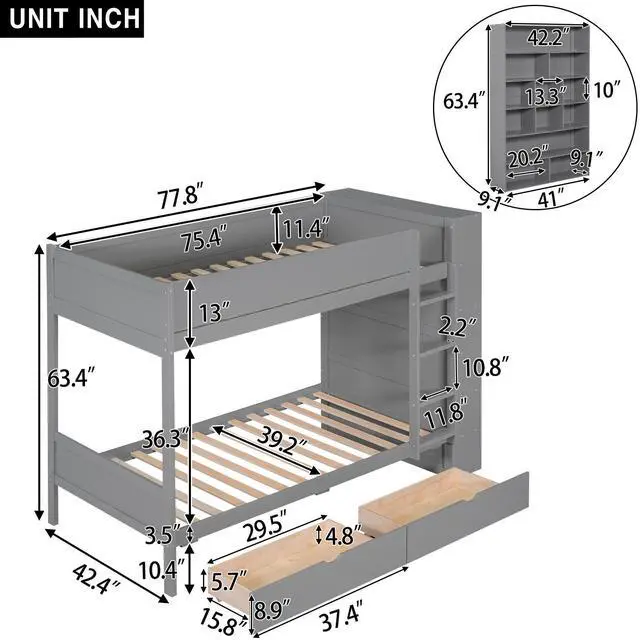 [Dimensions] Overall bunk bed dimension: 77.8 '' x 42.4 '' x 63.4 '' (L x W x H). Mattress not included. Some assembly is required, although we have provided clear instructions and tools.