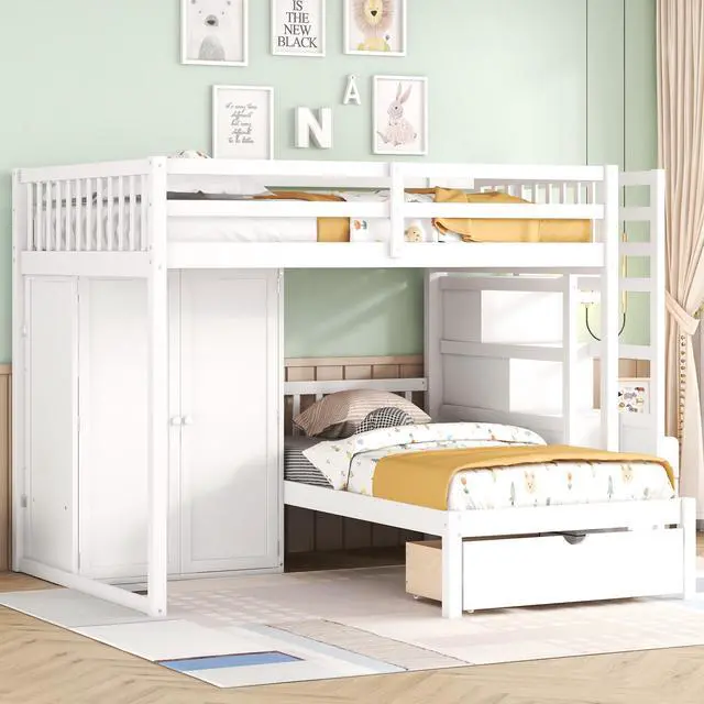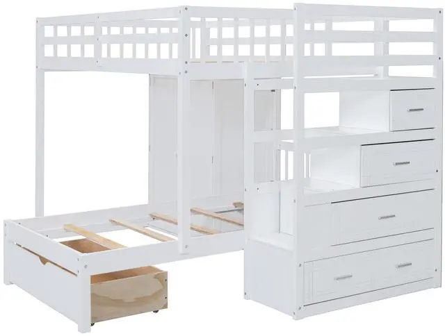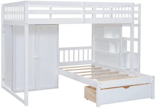 [Storage-Savvy Design] Say goodbye to clutter with built-in storage solutions! The side staircase features four convenient drawers, perfect for stashing away clothes, toys, or bedding. With an additional storage wardrobe included, you can keep linens, clothing, and other items neatly organized and within arm's reach.