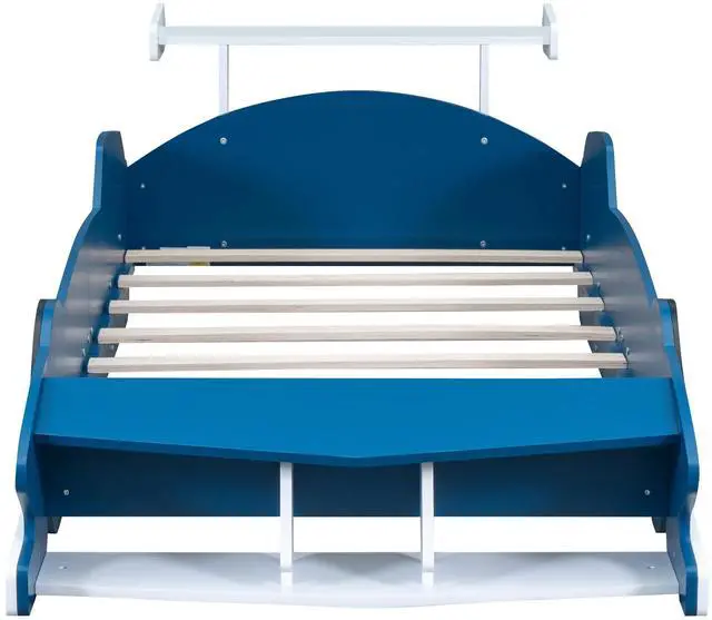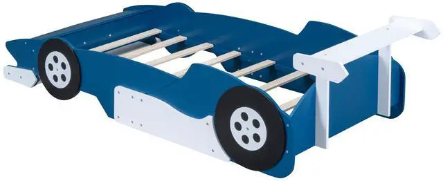 [Unique design] This bed with an appealing race car design and solid construction will be a real eye-catcher in your bedroom. This bed has 2 sizes and 3 colors. There's always one matches your bedroom.