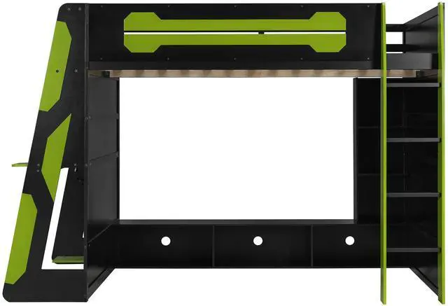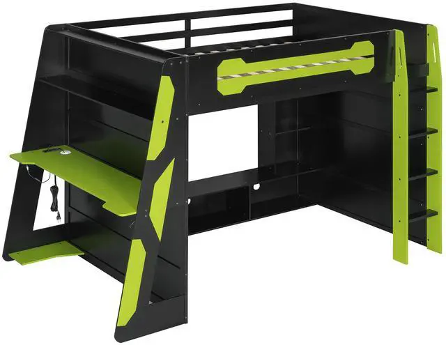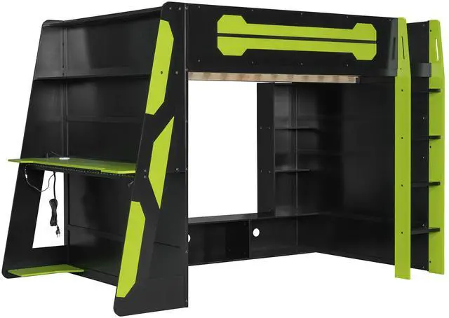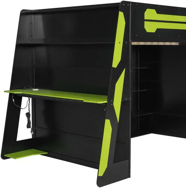 [Integrated Work & Play Desk]: Side-mounted desk accommodates a desktop PC and peripherals, with a built-in console shelf underneathideal for seamless transitions between work and gaming.