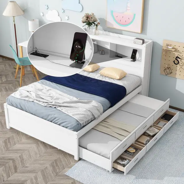 [With Trundle and drawers] The trundle can also be completely separated from the bed to provide private sleeping arrangements for guests. Three drawers into the trundle played the function of storage.