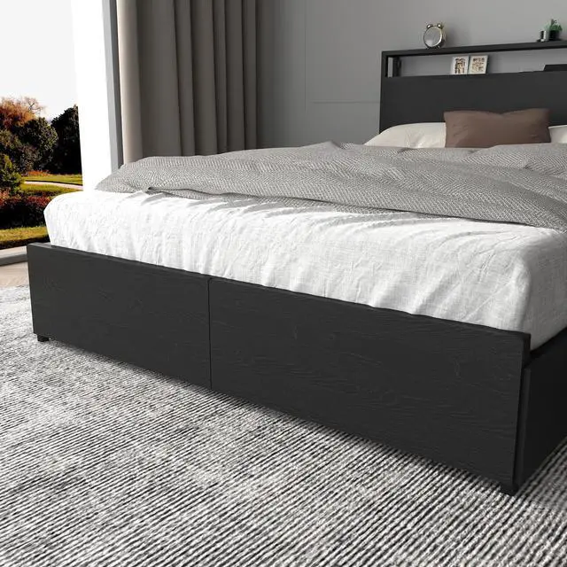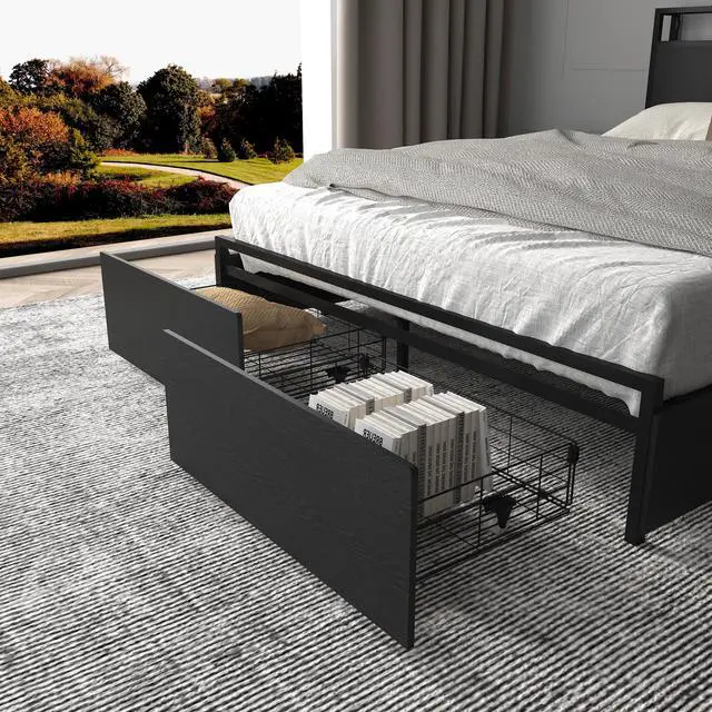 6 Storage Drawers Full Size Bed Frame with WheelsEach drawer is equipped with 4 smooth wheels for easy sliding in and out. Fixed holes on the bed frame full size which you can easily secure drawers to the bottom of the bed