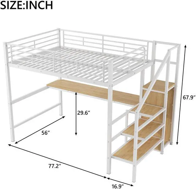 [Multifunctional Design] Loft bed with a staircase must be a benefit for you to put something in, this full loft bed is built with one comfortable sleeping space, one built-in desk and one small Wardrobe.
