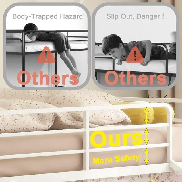 [Safety Design]: This bunk has highly reinforced guardrails to prevent your child from falling. A low height with a convenient ladder and slide makes it easy for children to climb up and down.
