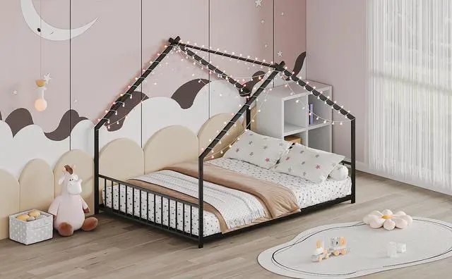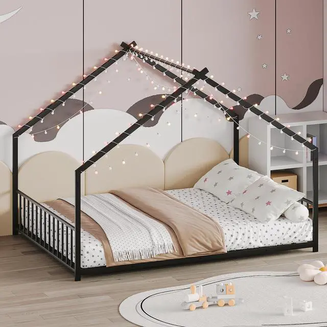 Safer Floor Bed: This children's bed is designed to be lower from the ground, minimizing safety hazards to the greatest extent possible. It is also very convenient, allowing children to easily climb in and out and cultivate a sense of independence. The position of the bed bar is lower, but it will lift the mattress off the floor to ensure that the bed remains clean and dry.