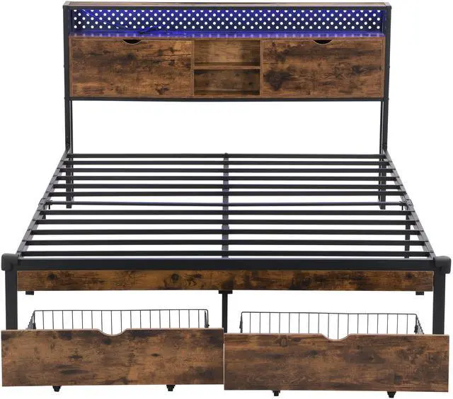 The bed headboard is built-in with 2 outlets and 2 USB-Storage headboard with outlets that make charging this design solves the problem of your electronics running low on power while you're lying in bed, allowing you to charge your phone, tablet, headphones and other electronic devices within easy reach for everyday use.