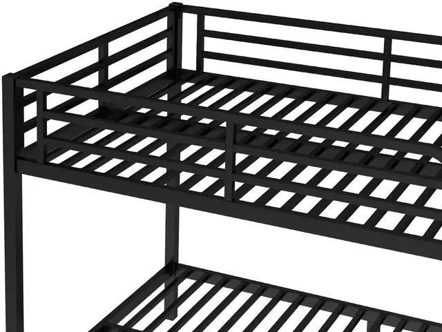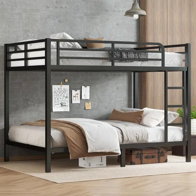 Safety Design: Our Full XL over Full XL bunk bed has 31 metal slats that has strong supporting force. Bottom bed with thicker legs for reinforcement. The guardrail around the upper bed which enhance safety and prevent accidental.