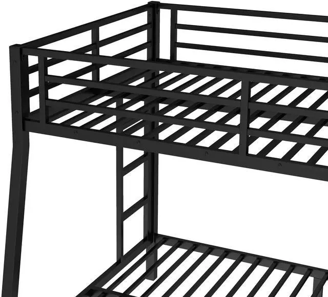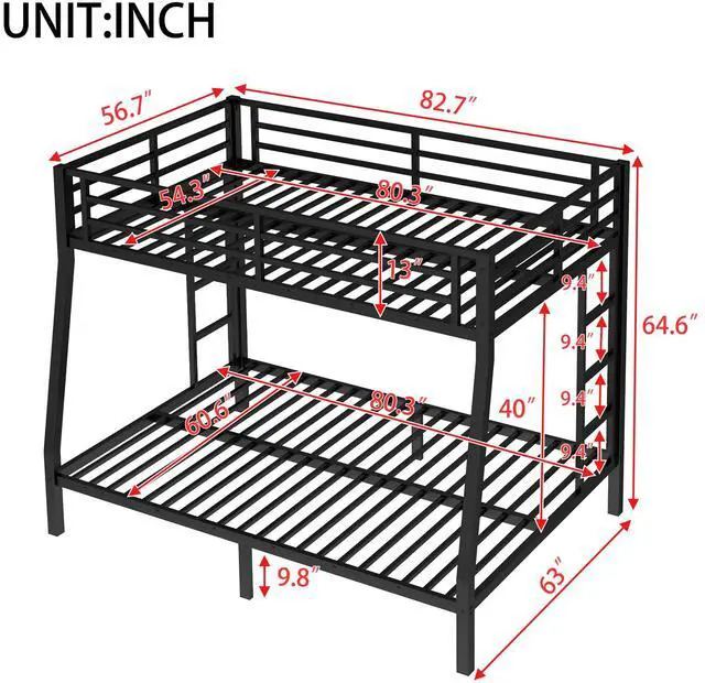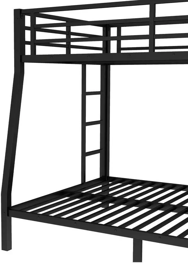 Safety Design: Our Full XL over Queen bunk bed has 24 metal slats that has strong supporting force. Bottom bed with thicker legs for reinforcement. The guardrail around the upper bed which enhance safety and prevent accidental.