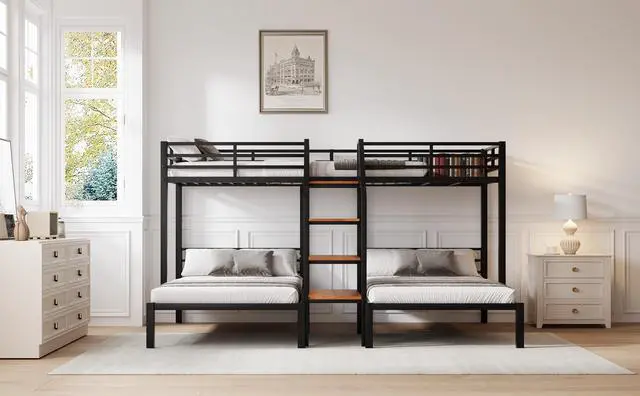 [Space Saving Design] Three beds in one, while this bed provides a solution for multi-person accommodation, it also greatly saves space.