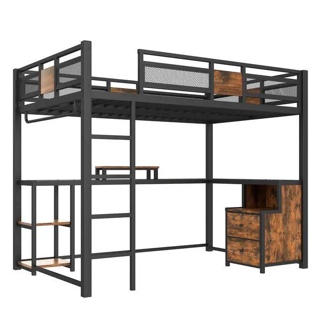 Space-Saving DesignThis full loft bed with desk and storage combines a full workstation with non-woven fabric drawers, maximizing your floor space. Perfect for apartments, dorms, or small bedrooms, it keeps your room organized while creating a cozy study or work area.