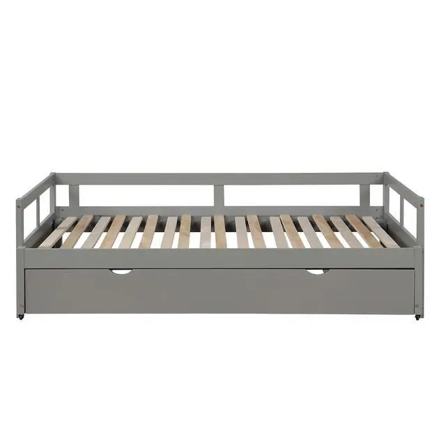 [Twin to King Design] When the trundle is pulled apart, this daybed can be expanded from twin size to King size. The twin size is suitable for children or daily use, but when the guests arrive, King size is the best choice.