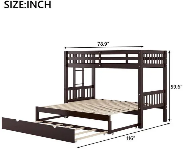 [Space-saving Design] The twin size down bed can be pulled out as a double twin platform bed. Add the trundle, you will have 4 beds to accommodate your friends or over-night guests.