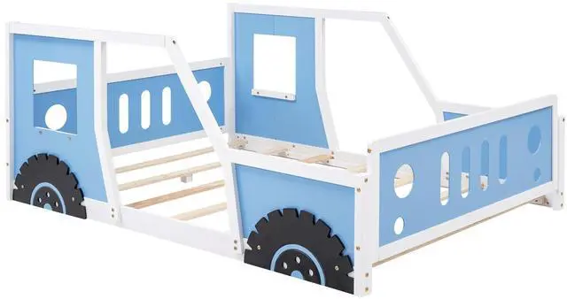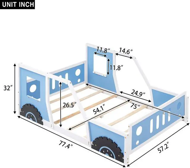 [Wheels Shape] The fun and playful classic car design is completed by decorative wheels. This piece is mattress ready with slatted rail supports.