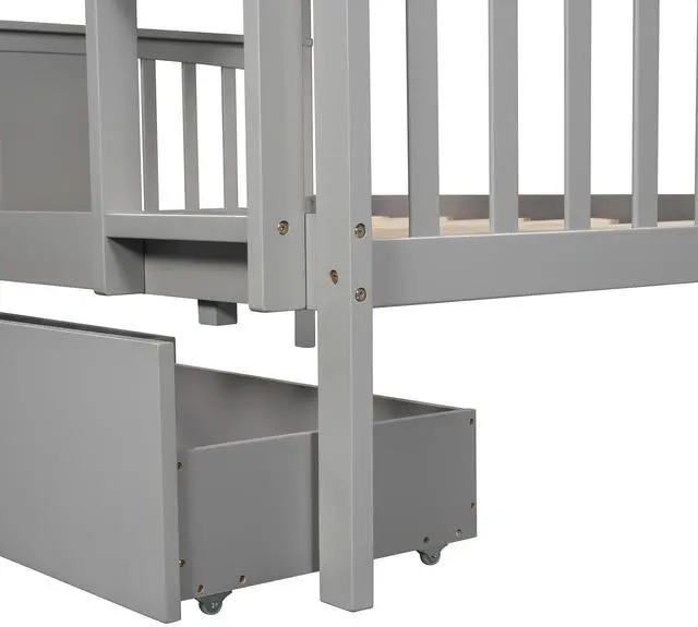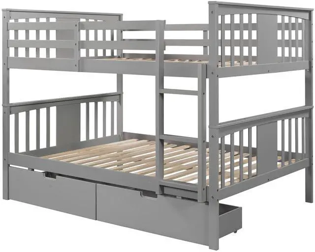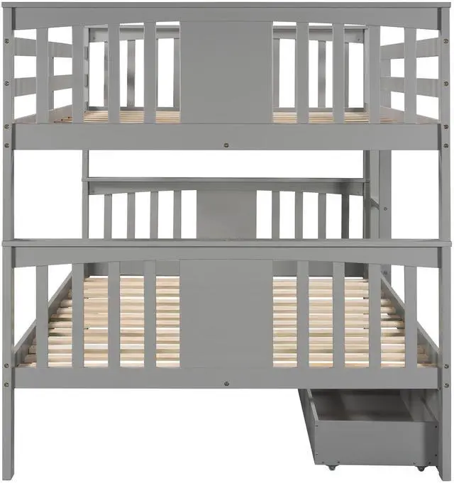 [Versatility galore] This bunk bed features one full size upper bed, one full size bottom bed and a pair of drawers for accommodating you or overnight sleepers. It can also be divided into two individual beds for even more convenience, depending on how you want to organize your space. No spring box needed.