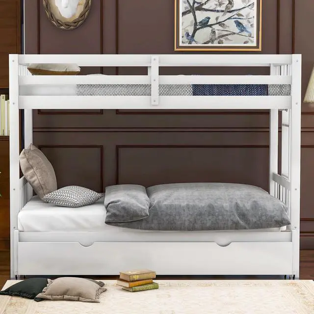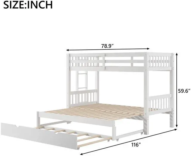 [Space-saving Design] The twin size down bed can be pulled out as a double twin platform bed. Add the trundle, you will have 4 beds to accommodate your friends or over-night guests.