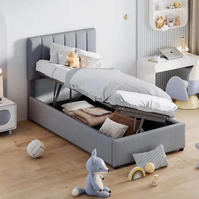 Hydraulic Lift Mechanism: Effortlessly lifts the bed frame for easy access to ample under-bed storage, making organization simple.