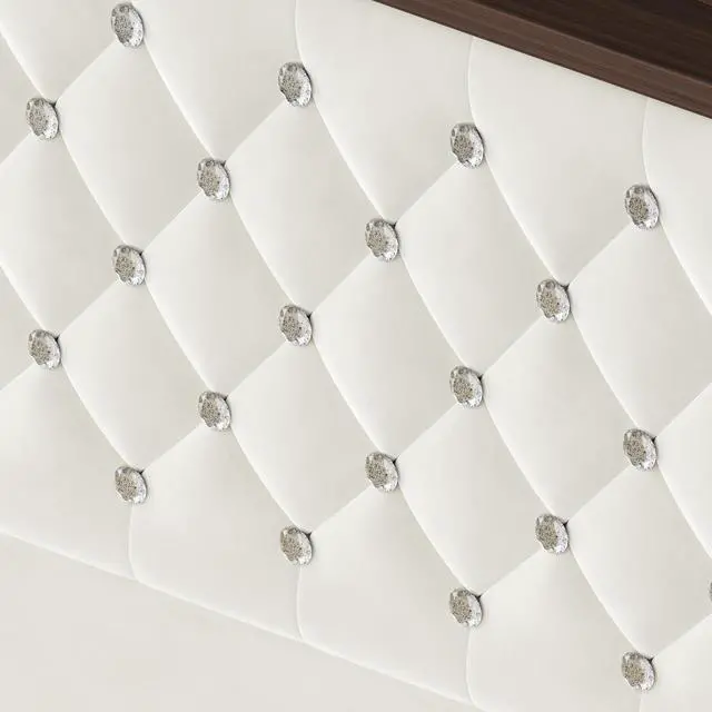 Luxurious Design: This bed is entirely wrapped in velvet, with the headboard made of tufted fabric and decorated with crystal-like buttons, making the bed both comfortable and luxurious.