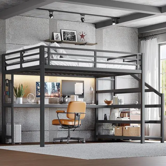 Durable Metal FrameCrafted from premium steel with a rust-resistant finish, this queen loft bed frame provides reliable stability and long-lasting use. The solid construction ensures both safety and durability for daily living.