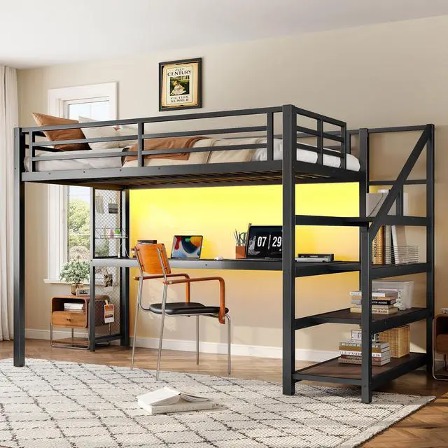 Space-Saving & Functional DesignThis twin xl loft bed with desk and storage stairs maximizes your room by combining a built-in desk, shelves, and sturdy stairs. The unique iron nets let you hang photos, calendars, or small items, making your space practical and personalized.