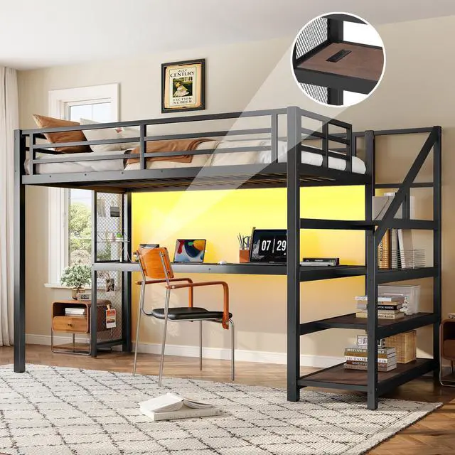 LED Lights & USB PortsEquipped with built-in LED lights and convenient USB ports, this twin xl loft bed with storage creates a cozy atmosphere and keeps your devices powered. Its perfect for studying, working, or relaxing in style and comfort.